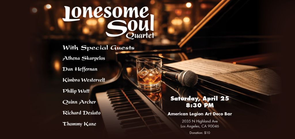 It has been over a year since The Lonesome Soul Quartet has gotten together. Let’s find our tonal center at the Art Deco Bar, hidden away in the famed American Legion Hall Post 43 (2035 N Highland Ave).